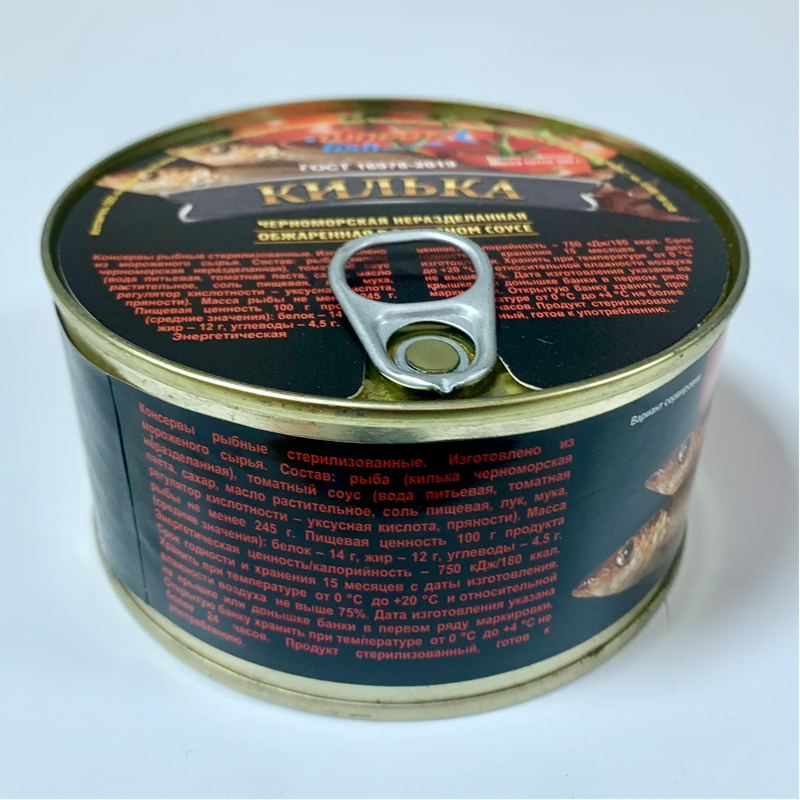 Состав: рыба (килька каспийская), масло, специи.