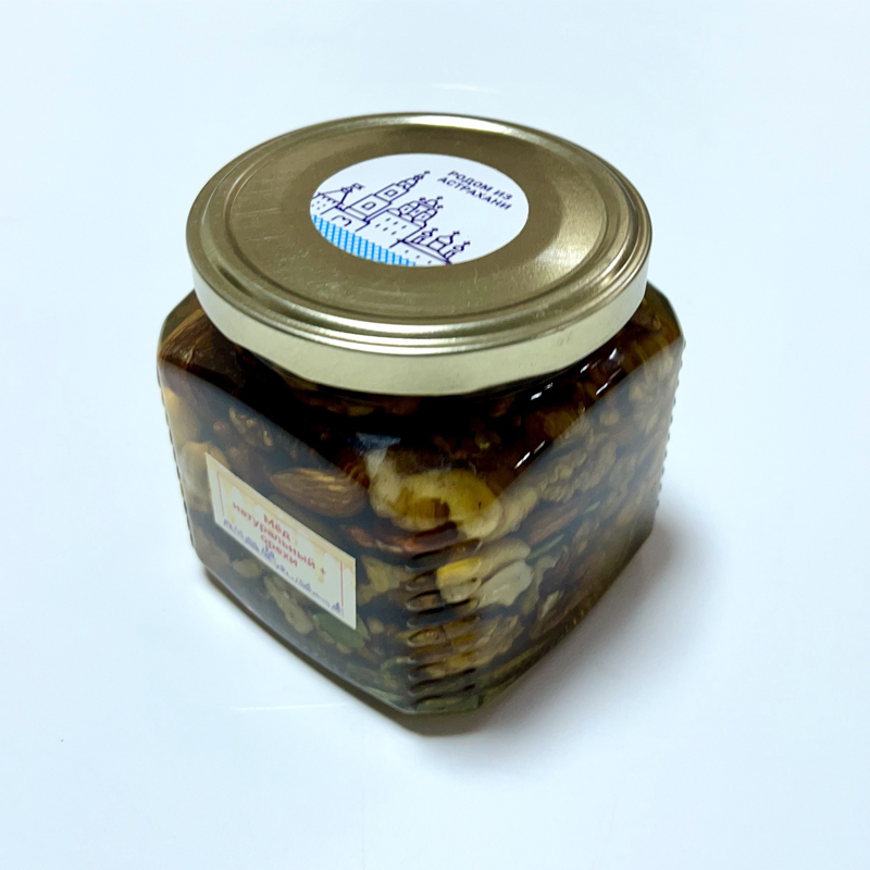 Позвольте себе роскошь натурального вкуса! Наш мёд с орехами — это тщательно подобранная композиция, где главную партию играет солнечный астраханский мёд, собранный с разнотравья бескрайних лугов дельты Волги. Его цветочный аромат и бархатистый вкус идеально дополняются хрустящими, питательными орехами.